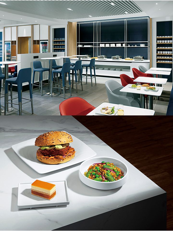 昨年4月に拡張・リニューアルされたエールフランスの「ホールK ラウンジ」。デュカス パリが特別に監修したラウンジ特製メニューをはじめ、フランス産食材を使ったオールヴィーガン食など、ヘルシーさと美味しさの両方にこだわったメニューの数々は必食。座り心地のよいラウンジチェアやリラクセーションエリアのほか、ビジネス利用に嬉しいプライべートなワークエリアや読書席など、多様な過ごし方に応える多彩な空間づくりも好評。