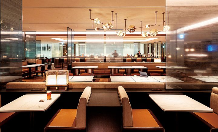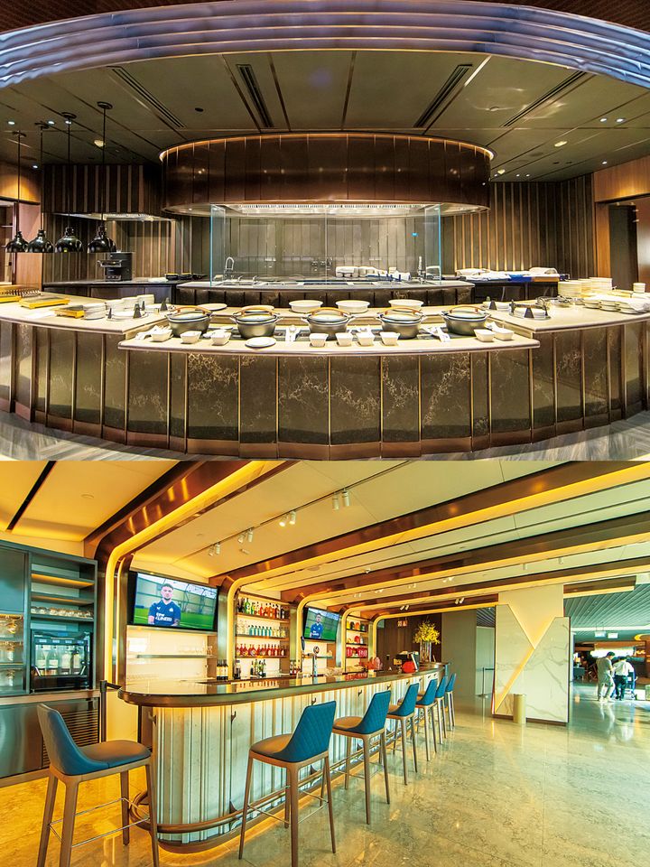 昨年5月にリノベーションされた「ザ・ブリッジ」。ウッドやストーンを用いたやすらぎを感じる空間で、ワンタン麺や担担麺を提供する「ザ・ヌードル・バー」、点心のワゴンサービスを楽しめる「ザ・ヌック」など、食にこだわるキャセイならではのおもてなしを堪能して。アート作品も各所に展示され、創造性と感性が刺激されます。