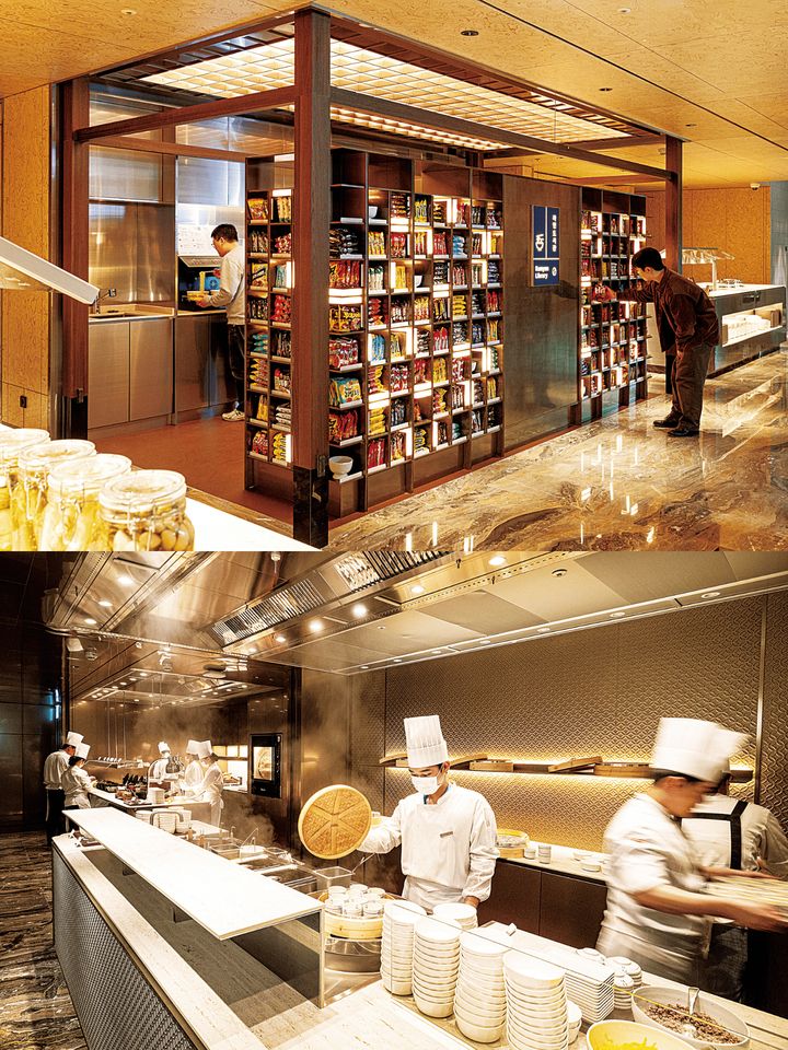 〈上〉ファーストクラスのライブキッチンではバクテーやパスタが人気。