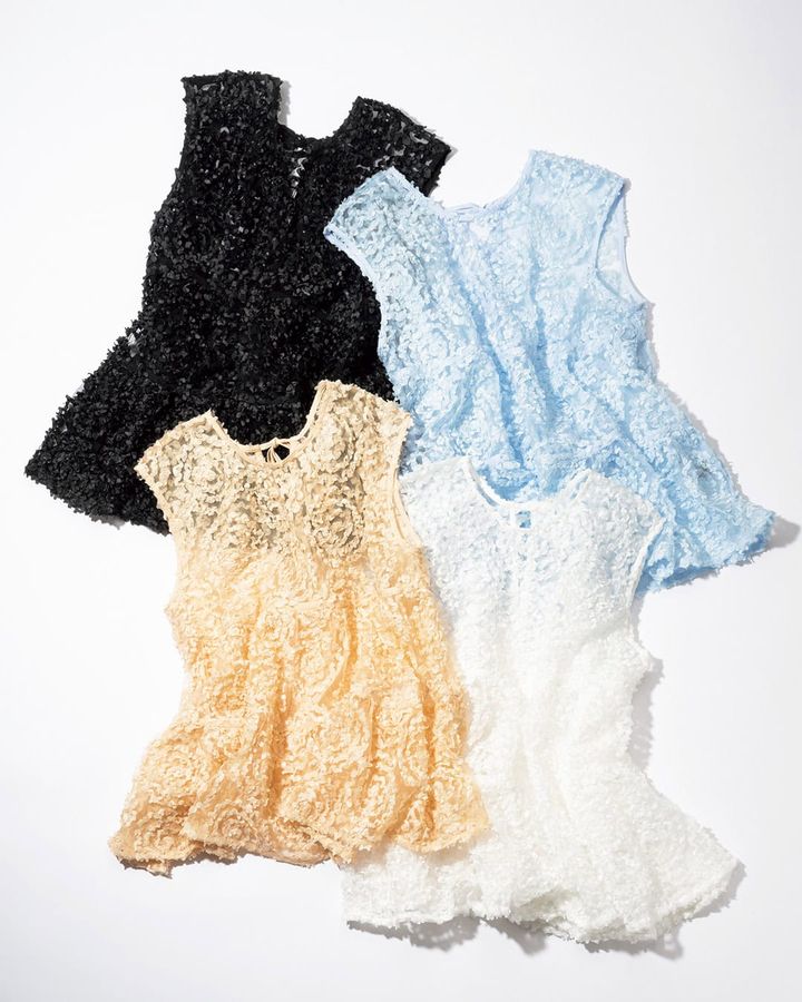 見ているだけで高揚感が高まるレースブラウス。レースからちらりと除く素肌が華やかシーンを彩ります。ジャケットを上に重ねても今年らしいコーデに。手洗い可能。