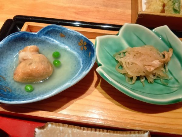 しんじょの巾着あんかけ煮や和え物も、やさしい味わいながらも出汁が効いていて美味しい。