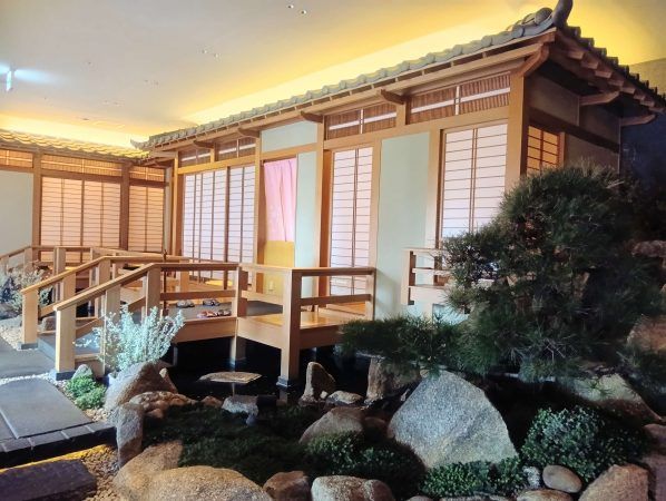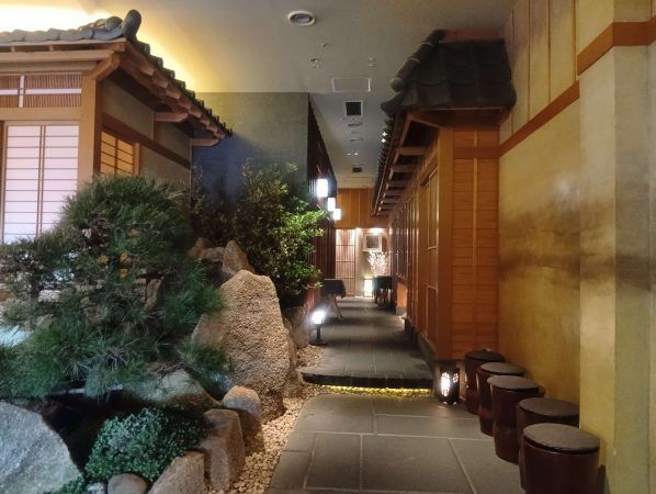 一歩足を踏み入れば、滝や小川のせせらぎ、石畳の小路、庭園など、京都の路地に入り込んだような非日常の空間が広がっています。とっても素敵。 街の中にいることを忘れさせてくれる、極上の時間が流れています。