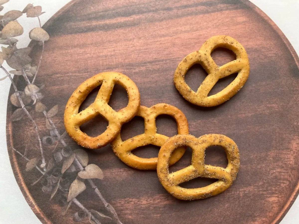 Seria(セリア)の「プレッツェル ブラックペッパー味」は、結び目を模した形状が特徴の、香ばしいスナックです。