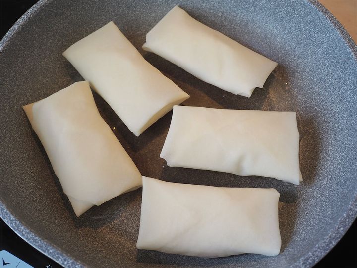 3. フライパンに油を入れ中火で熱し、2を巻き終わりを下にして並べる。両面をカリッと焼き色がつくまで焼いたら完成。