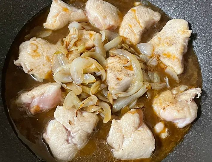 煮込むと、片栗粉によってタレがトロっとしています。