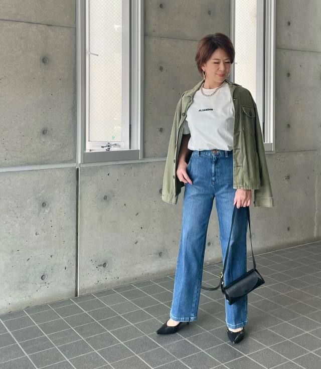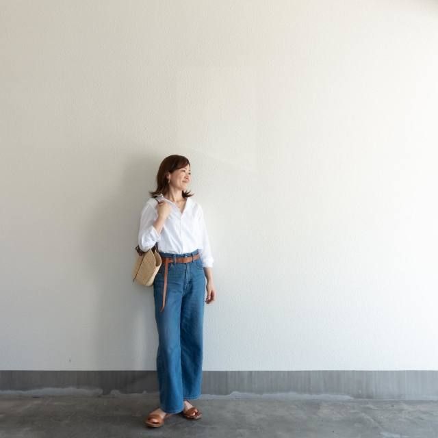 まずご紹介するのは、カジュアルコーデで外せないデニムパンツを使った上品カジュアルの作り方。デニム自体がラフなアイテムなので、トップスは基本きれいめなデザインを選ぶと、誰でも簡単に上品カジュアルが目指せます。