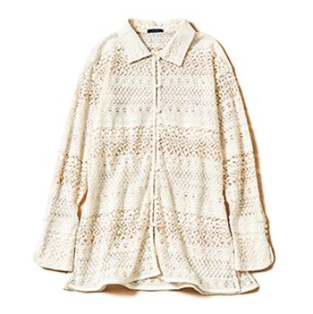 白レースシャツ/ファナカ(ティースクエア プレスルーム) 形はシャツ、編み目はクロシェニットのようなデザインで、1枚でも羽織りとしても活躍。