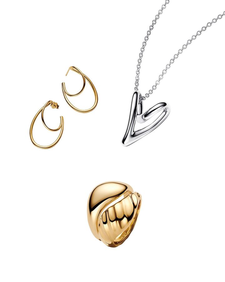 「変形のハートや無造作なラインが美しいデザインなど、ひとつプラスするだけでリズミカルな表情が生まれ、コーディネート全体の鮮度がアップするアイテムが豊富。コンテンポラリーなアクセントを添え、デイリーコーディネートに差を生み出してくれるはず」(by 沼田珠実)