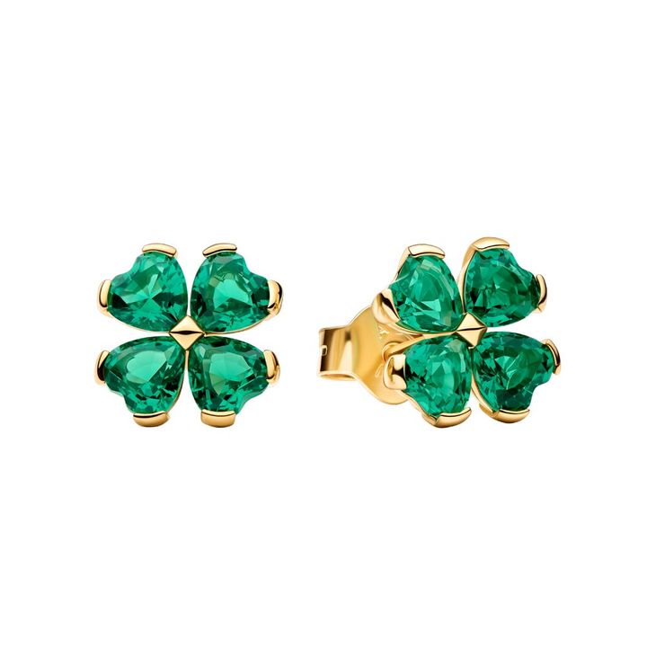 ハートシェイプのグリーンストーンで、ラッキーモチーフでもある四つ葉のクローバーを表現したスタッズイヤリング。ほどよいサイズ感で、さまざまなスタイルに寄り添い、コーディネートのアクセントとして存在感を発揮。