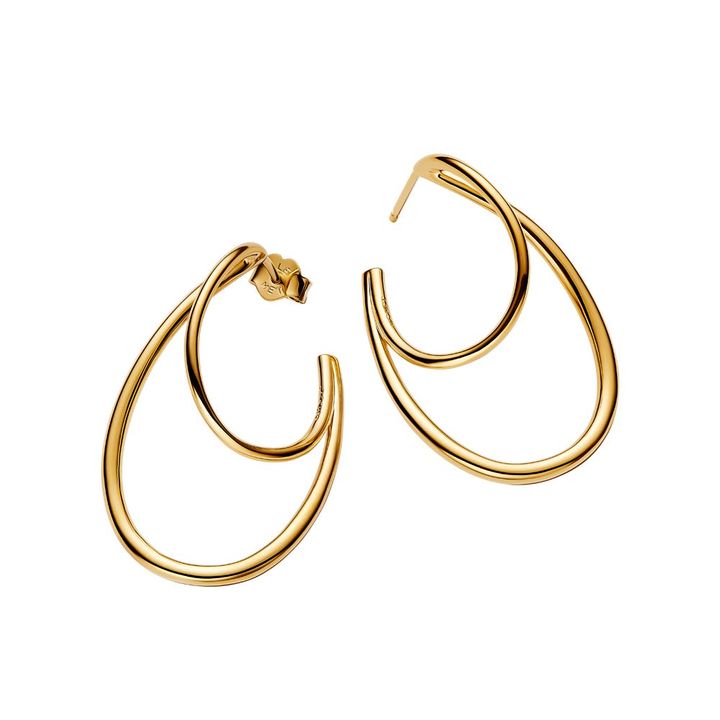 大ぶりでありながら、軽やかな仕上がりのダブルラインのフープイヤリング。ワイヤーをくるりと巻いたような有機的なシルエットで、モダンなアクセントに。コーディネート全体のポイントにもなり、幅広いシーンで活躍。