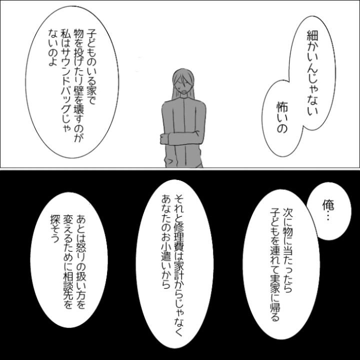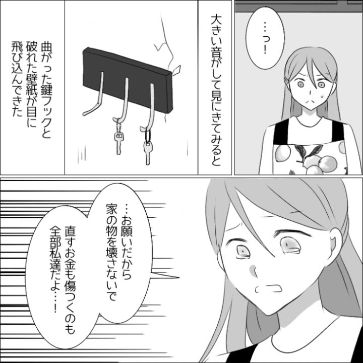 自分の壊したものの修理金額を目の当たりにしてさすがに反省をした様子の夫は物にあたるのをやめたのでした。
