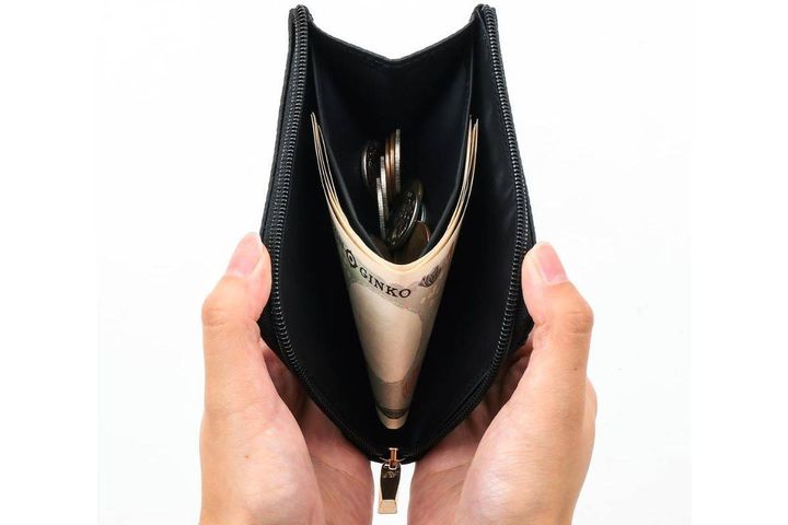 ATAOの「ミニ財布BLACK」はL字ファスナーで大きく開くので、開けると中身がひと目でわかります。