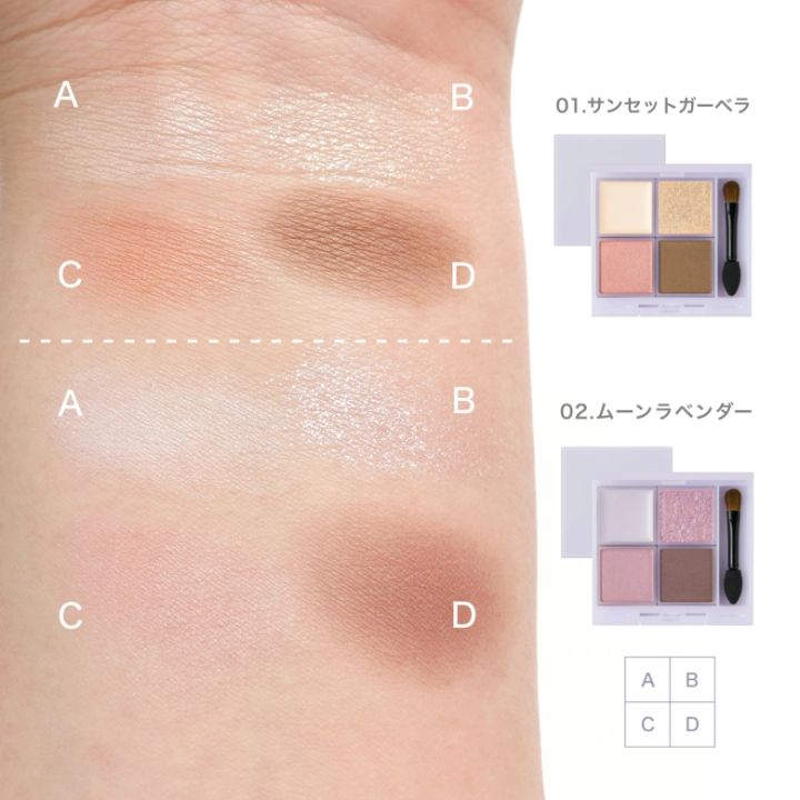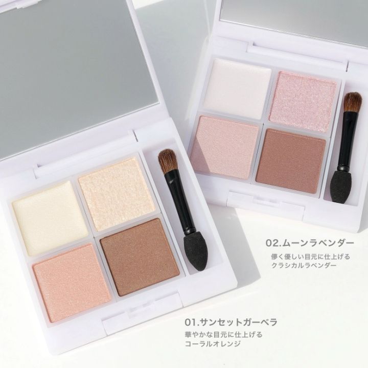 ちなみにどちらも左下のキーカラーはチークとして使ってもかわいい♡くすみにくいクリアな発色なのでまぶたに使うと立体感が際立ち、チークに使うと目元との統一感も演出できておすすめです。