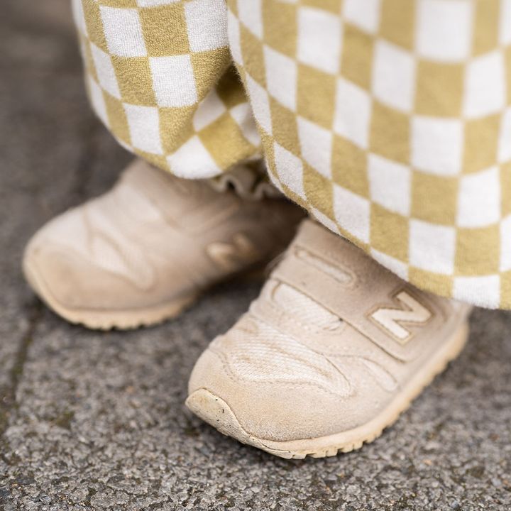 足元は歩きやすい『ニューバランス』をオン!ベージュワントーンで バランスを整えた、シューズ使いがお見事。