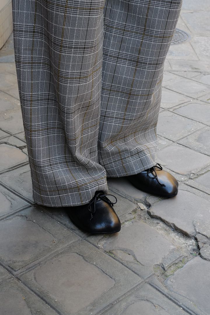 モード感と抜け感がでる「エムエム6 メゾンマルジェラ」の“アナトミック バレエシューズ”。ガーリーなエッセンスを加えられるバレエシューズはワイドパンツとも好相性。