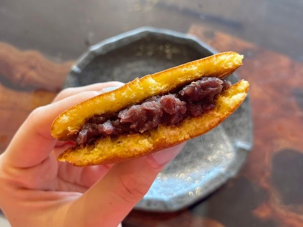 店内で一枚ずつ焼き上げられたどら焼きは、手で持つと潰れてしまいそうなほどしっとり!そっと半分に割ると、綺麗な粒あんが顔を出します。