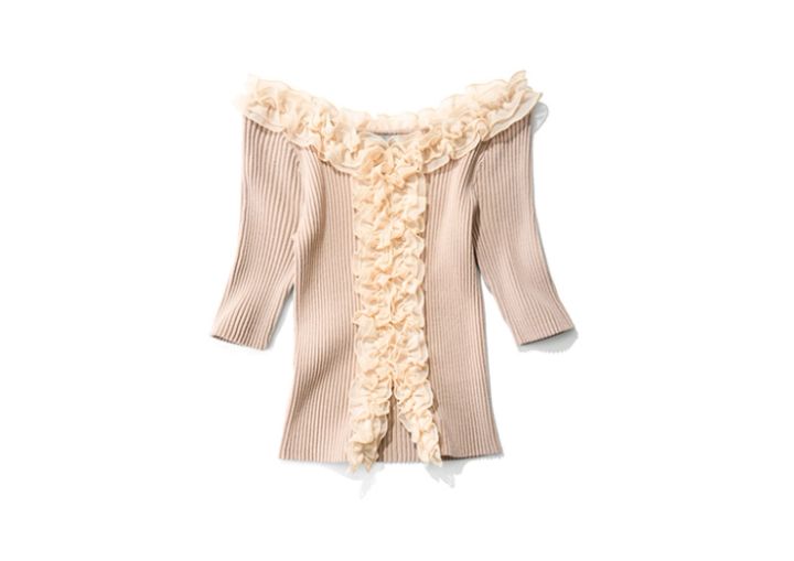 甘さの象徴のような存在のフリルは、立体的なボリュームを生かして盛ったデザインを指名したい。シンプルなスタイリングでまとめるのが旬顔になる決め手!