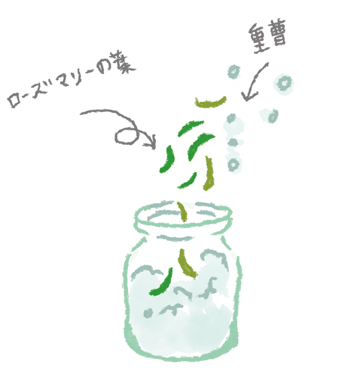 500Wの電子レンジで1分30秒~2分加熱して乾燥させたローズマリーの葉と重曹を1:4くらいの割合で混ぜ、容器に入れてガーゼをかぶせる。靴箱やたんす、冷蔵庫に置くと、気になるにおいを吸収してくれます。