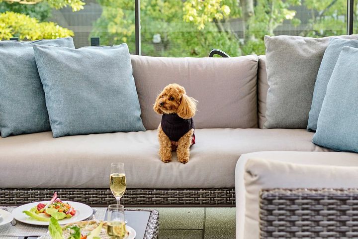 これまでバーカウンターで親しまれてきたハッピーアワーが、今季はテラス席にも拡大。ソファ席を備えた開放的な空間で、心地よい風を感じながら楽しめる贅沢な時間に。18:00(L.O.)まで延長され、夕暮れ前のひとときもゆったりと満喫できます。さらに嬉しいのは、テラス席はペット同伴もOK。お散歩の合間にふらりと立ち寄ったり、愛犬とともにリラックスした時間を過ごす。そんな新しい過ごし方も叶います。