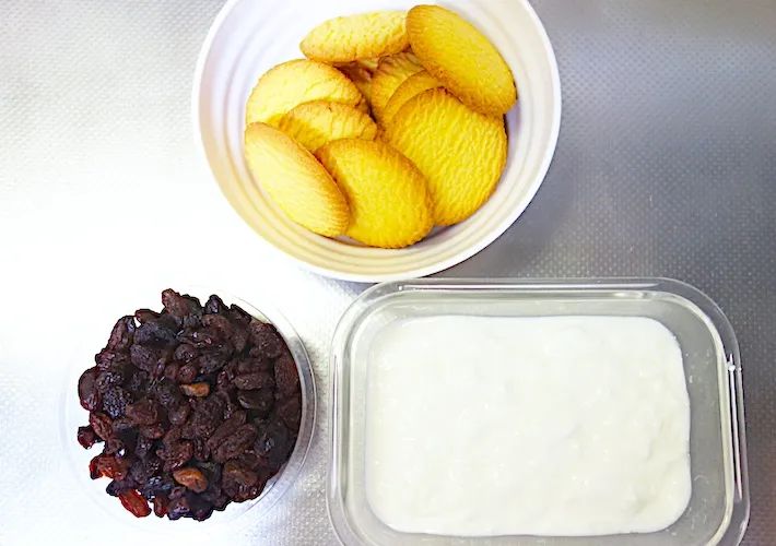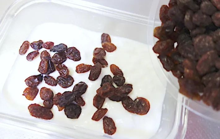1.ヨーグルトにレーズンを漬ける
