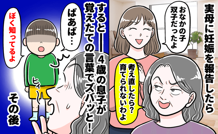 2人目を妊娠したと思ったら、おなかの子はまさかの双子でした。体力的にも、経済的にも、精神的にも不安がありましたが、夫としっかり話し合いました。そして実母に報告すると……。
