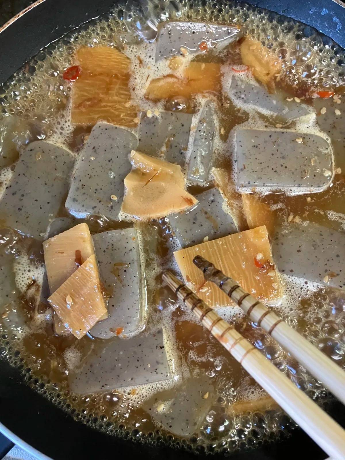作り方は、小鍋にこんにゃく・ピリ辛煮の素・水を入れて煮立たせ、しっかり煮詰めるだけ♪