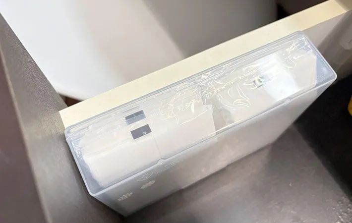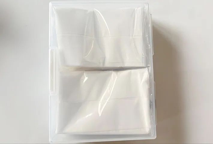 『ダイソー』の『はがき整理ケース』は、ポケットティッシュの収納にもジャストフィット!我が家が使っているポケットティッシュだと、MAXで6個入ります。