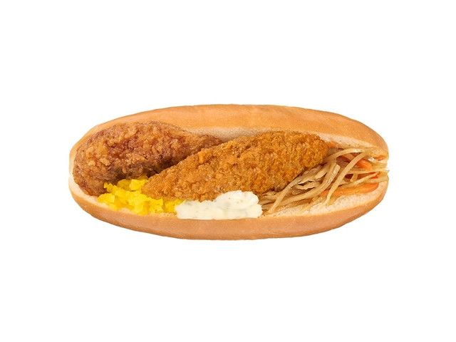 コロッケと白身魚フライ、きんぴらごぼうをはさんだ、お弁当をイメージしたボリュームのあるコッペパンです。 取り扱い店舗 全エリア