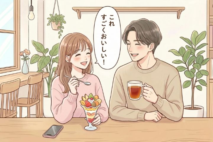 会話の話題に困ったら、注文した食事や飲み物の話をして彼との共通点を見つけていってくださいね…!