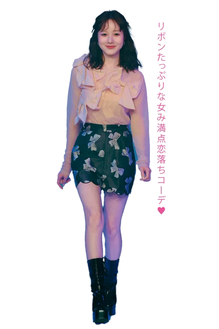 〈紗来〉ポイントレースミニスカート 9,460円/être loin バブーシュカ 3,960円/カオリノモリ(OVERRIDE ルミネエスト新宿)ブーツ/スタイリスト私物〈ナナ〉スパンコールスカート 12,430円/être loin リボンバレッタ 3,300円/idem(アンティローザ)サンダル 6,590円/ZARA(ザラ)〈紅葉〉サイドレースアップデニムパンツ 6,490円/MORE self LOVE ネックレス 4,400円/Linola(805showroom)サンダル/スタイリスト私物〈理奈〉ハートデニムショートパンツ 14,080円/lilLilly(lilLilly TOKYO)ブーツ 17,990円/ZARA(ザラ)ヘアリボン/スタイリスト私物〈琉〉スエットティアードスカート 3,299円、リボンバレッタ 550円/ともにPHILLY パンプス 10,890円/RANDA レースタイツ/スタイリスト私物〈紗英〉サイドリボンデニムパンツ 7,590円/MORE self LOVE イヤリング 2,750円/I AM THE 1(レイジーワークス)サンダル/スタイリスト私物