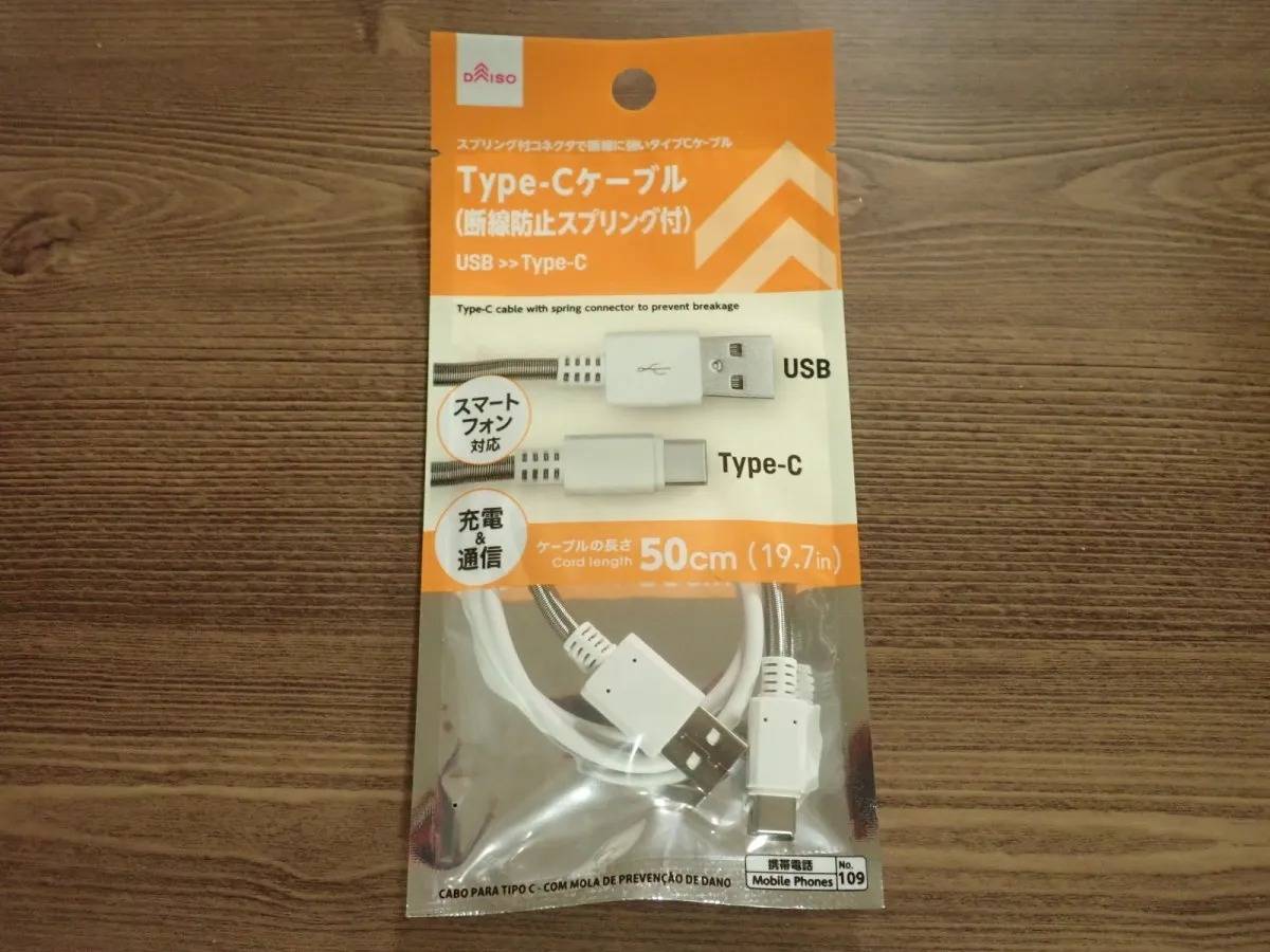 【ダイソー】おすすめ家電系アイテム②Type-Cケーブル(断線防止スプリング付)