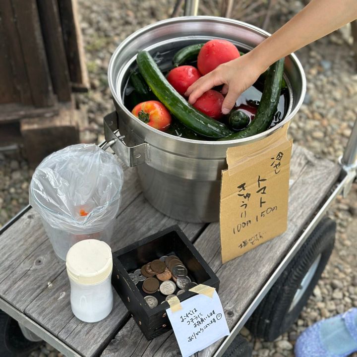 庭で採れたお野菜も、無人販売で置いてあったり、何から何までレトロ◎