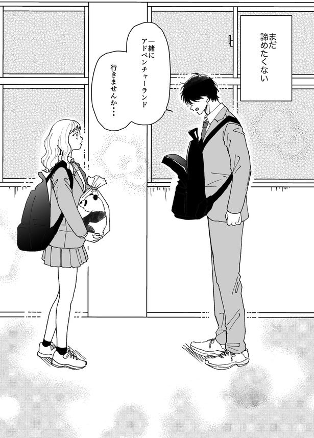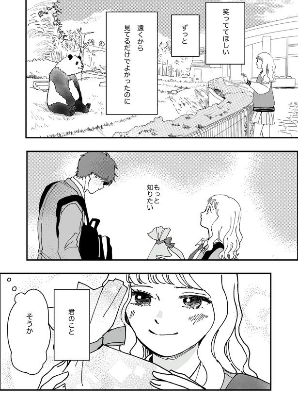 『ひとりとひとりで恋になる』のさゆり(@NANASHIORI)さんによるオリジナル連載。主人公・半田は、過去のトラウマから、努力が嫌になったダウナー系男子。ある日、体育で鼻血を出した半田に、クラスのマドンナ・梅原さんが借してくれた1枚のハンカチがきっかけで、動物園のパンダになることに!? 努力嫌い男子が再び誰かのために頑張る姿を描く、新感覚ラブコメディ!