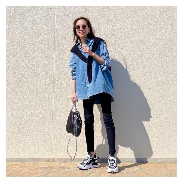 スナップで着用しているデニムシャツのブランドは>>H&M(エイチアンドエム)