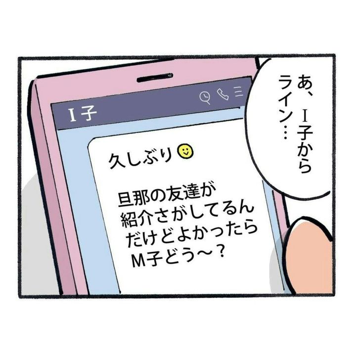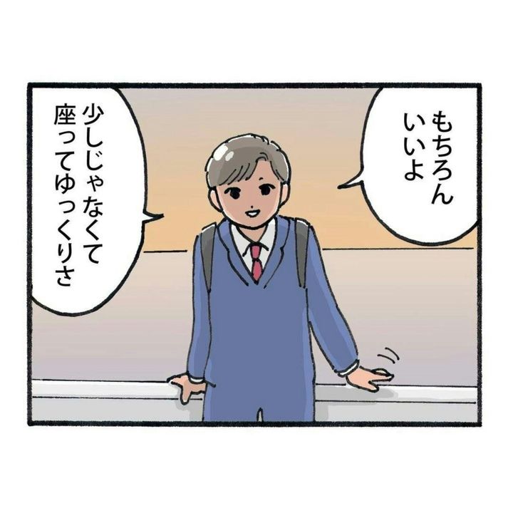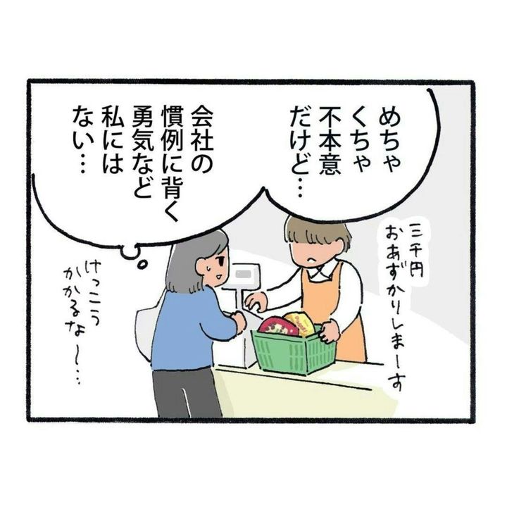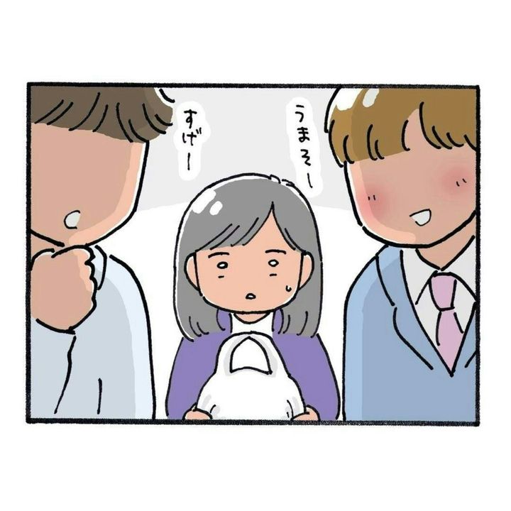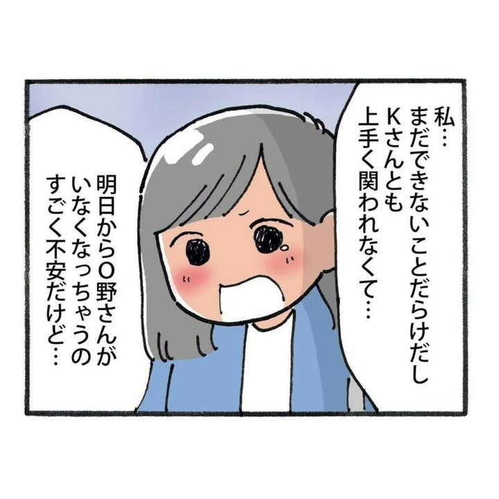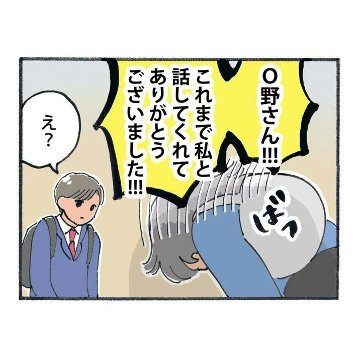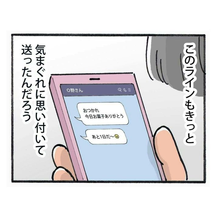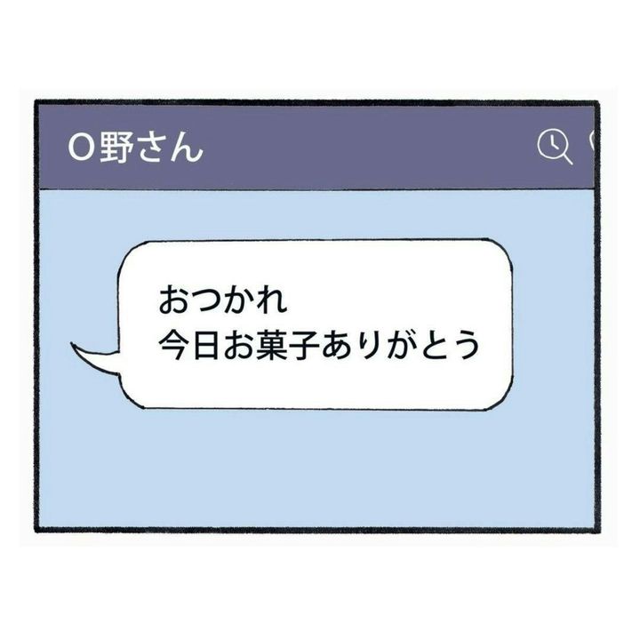 帰り道、おち込んでいたM子さんに、O野さんから「おかしありがとう」とメッセージがとどきます。メッセージに救われた気持ちになった、M子さん。