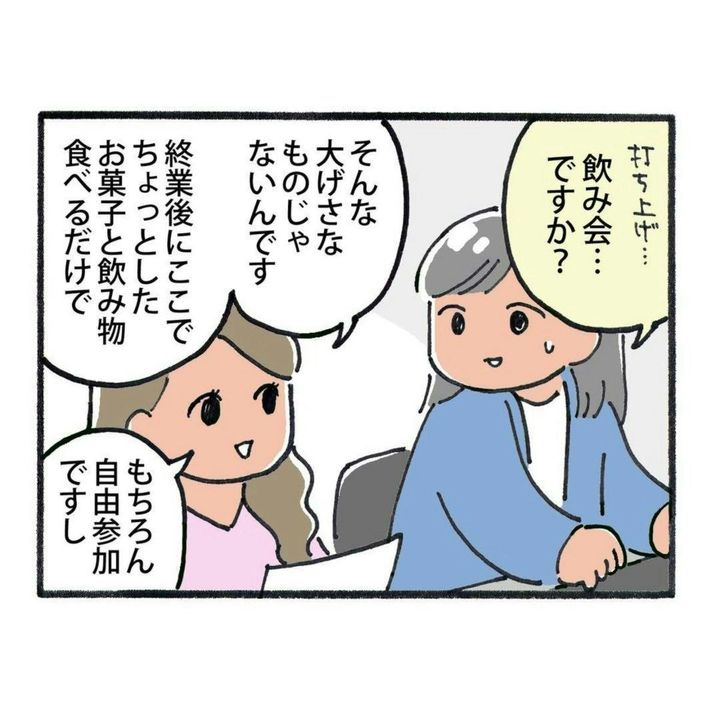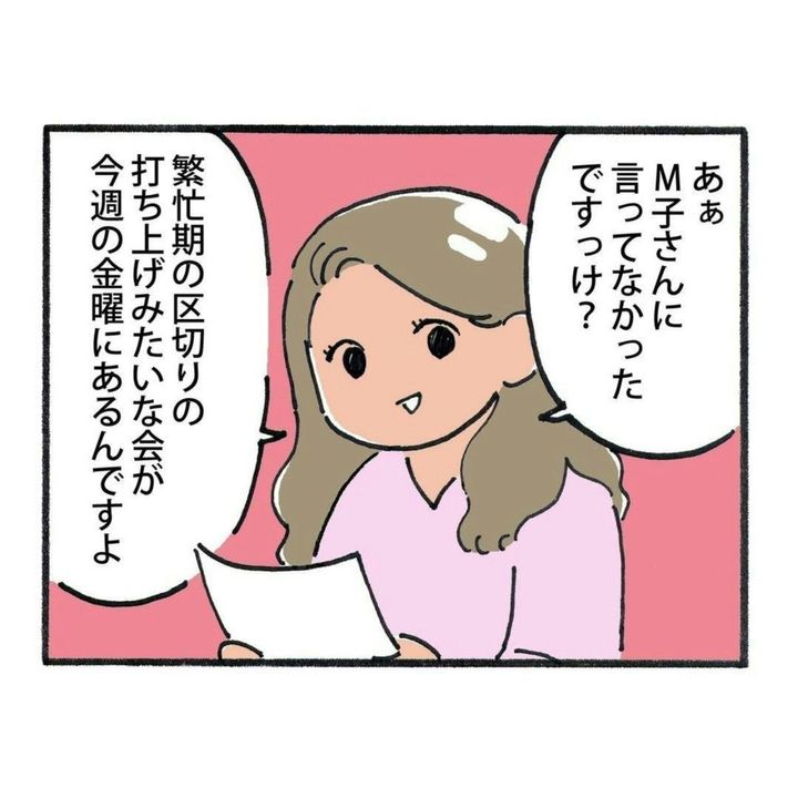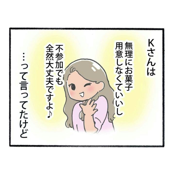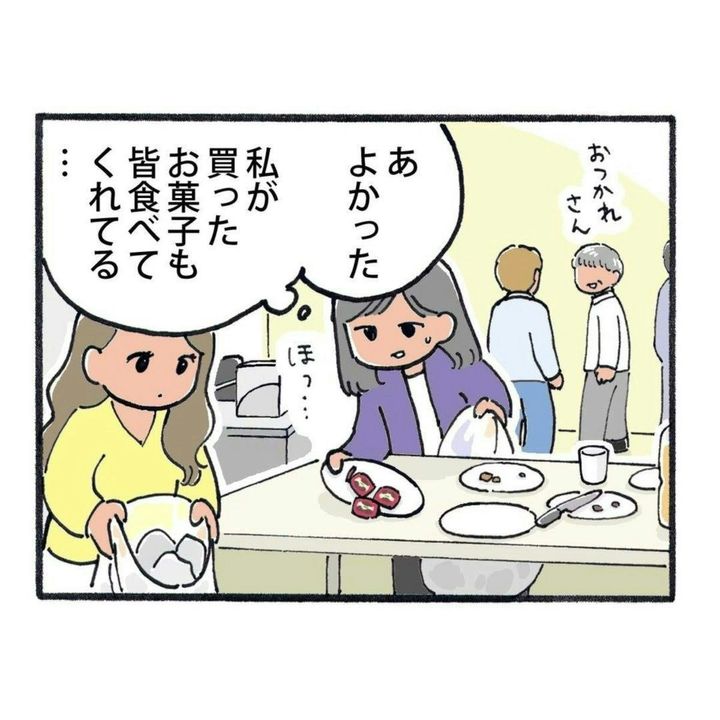 「おつかれ会」について、Kさんがどういう意図でM子さんに「おかしを準備しなくてもいい」と言ったのかはわかりませんが、M子さんにとっては不本意な状況になってしまいました。