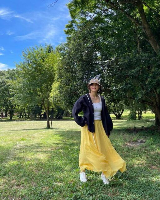 5月~6月の第1週ごろなら、ロングスカートに薄手の羽織モノを合わせておくと安心。さらに長袖or半袖インナーで気温に合うよう調節しましょう。