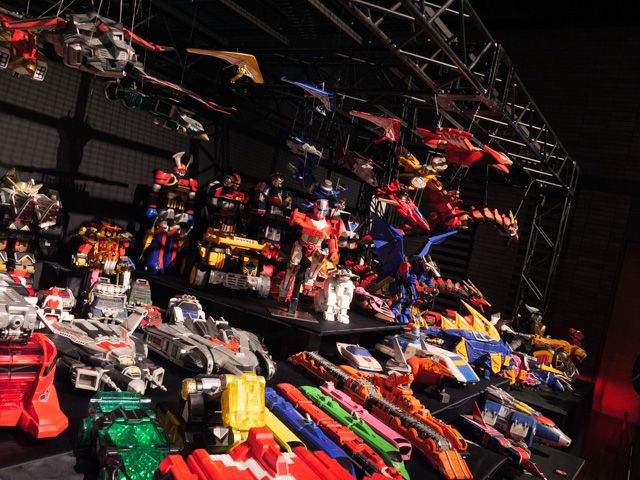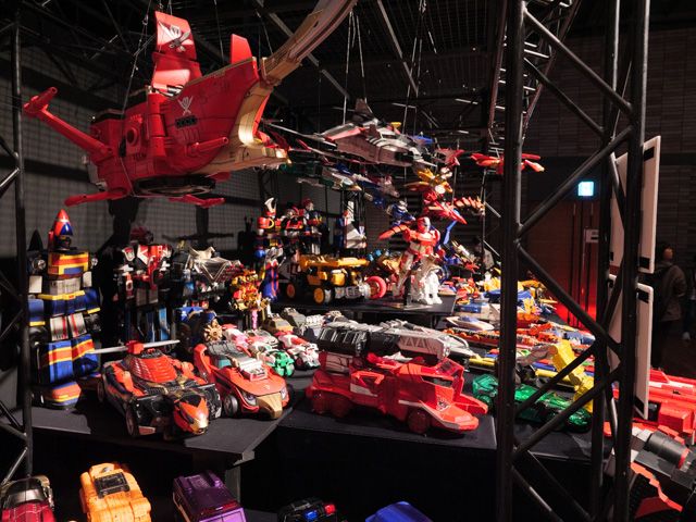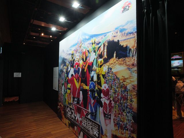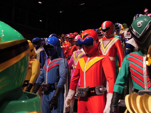 入ってすぐのこの場所だけで、すでにカメラマンと「私、タイムピンクがとても好きだったー!」「シンケンジャーの漢字ビジュアルいいよね!」「ミス・アメリカのデザインセンスは軍を抜いている!」「サンバルカンのシャークの決めポーズよ!(笑)」「いやそれ言ったらゴーカイグリーンの変さはすごいよね」・・・・などなどなどと、出てくる出てくる、マニアック会話!(戦隊好きにとっては基本会話でしょうか?笑)