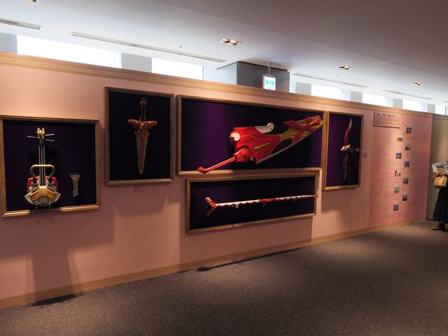 武器のコーナーも凄いすごい! わーーーー!!現物大きい!!!!シンケンジャーのレッドが使う「烈火大斬刀」ではないですか!実際に使われただけあって、グリップなど各所に傷みがあったりするところも逆にリアルですね!この刀が大きいため、劇中でも主人公(女性)はこの刀を蹴り上げて肩に担ぐシーンがあったと記憶しています。剣などの武器以外でも、ヒーロー達が数名で、戦闘シーンの最後に担いでいた必殺武器のバズーカなどもありました! とにかくものすごい数の展示なのです。