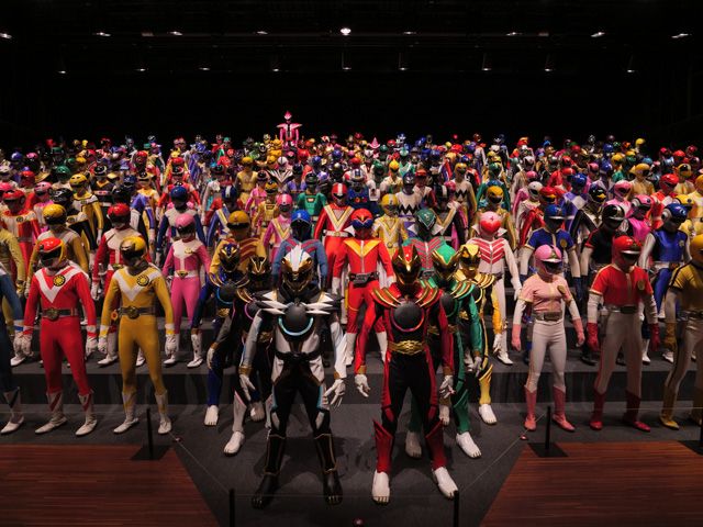 50年の歴史の中で登場してきた、総勢300人程のスーパー戦隊ヒーロー一同が、眼の前に、大集合ですっ!!!!!(鼻息荒い) 全て実際に使われていたスーツなので、傷みや色あせなどが見られるものもありますがそれがまた良き!