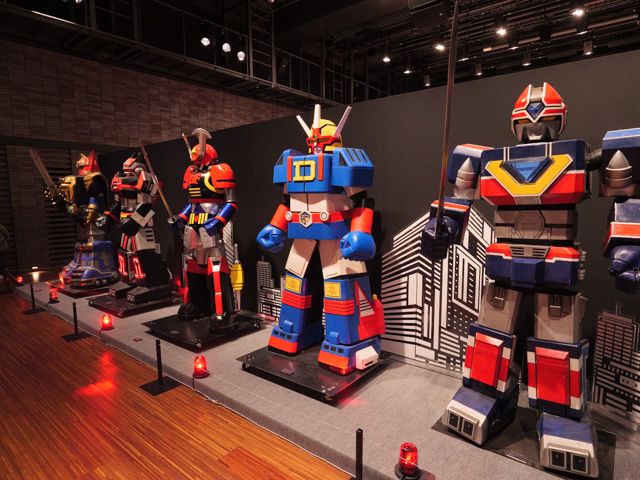 そのコーナーの前には、作中での巨大ロボさん達も凛々しくズラッと勢揃いです。 バトルフィーバーロボは、この展示会のために、新規造型が施されたんだとか!嬉しいです。