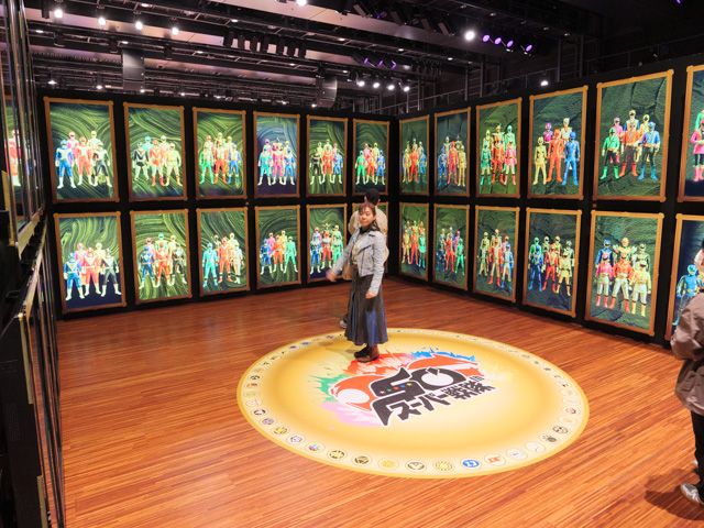 おおおっ! これは圧巻!全ての戦隊の動画が流れる部屋です。