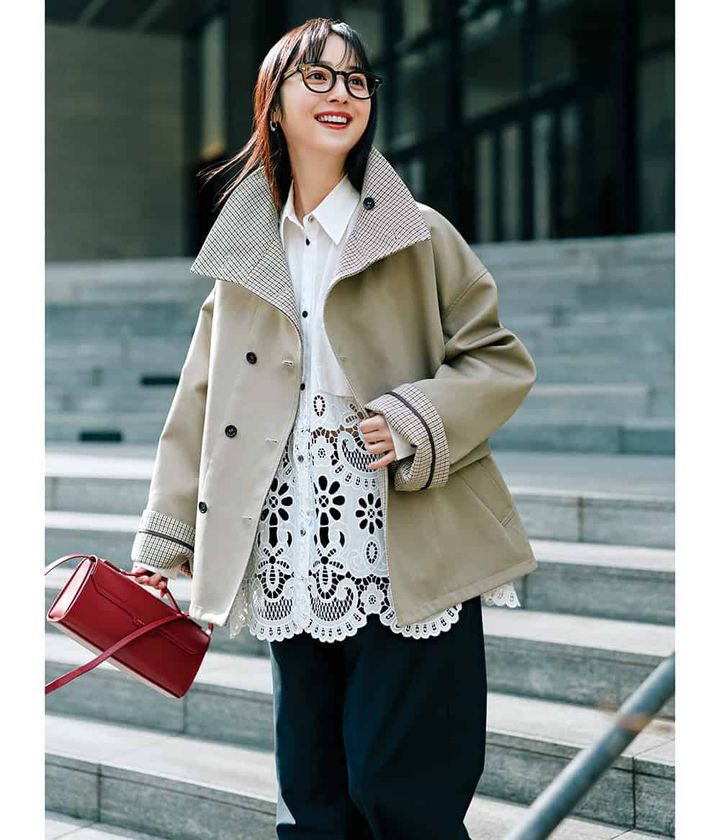シャツ¥24,200(メゾンスペシャル/メゾンスペシャル 青山店)コート¥319,000(マディソンブルー)パンツ¥29,700(コンテ/コンテ 青山店)バッグ¥253,000(アニヤハインドマーチ/ロンハーマン)メガネ¥23,800(カリン/STARDREAM JAPAN)ピアス¥187,000(スピネリキルコリン/リトルリーグ インク)