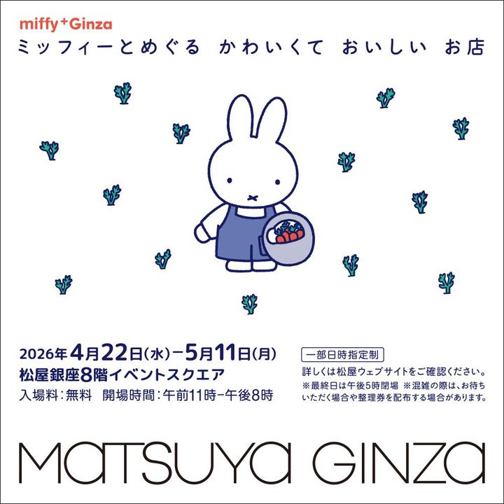 2026年4月22日から5月11日までの期間、松屋銀座8階イベントスクエアでは「ミッフィーとめぐる かわいくて おいしいお店」が開催されています。