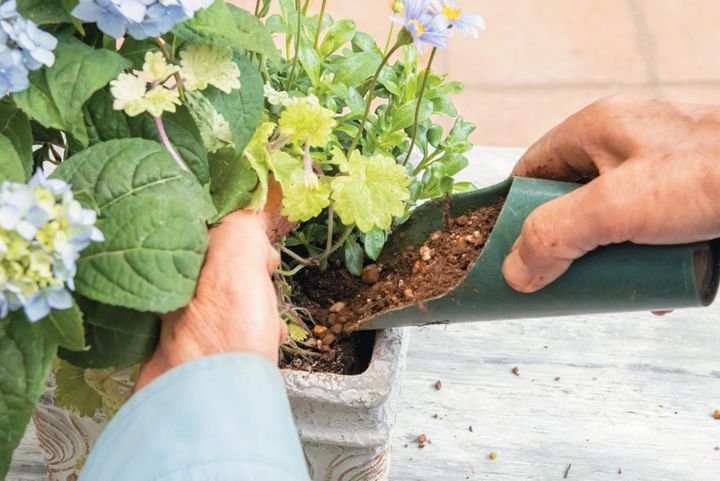 アジサイの寄せ植えを作ったことがない方でもできる3ポットの寄せ植えを紹介します。ポット苗のアジサイを見かけたら、ぜひ挑戦してみてください。