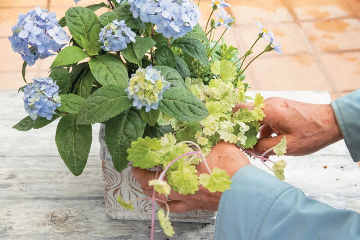 2. 人気ガーデナー土谷ますみさんが作り方を伝授【小さなアジサイの寄せ植え】同系色でまとめてやさしげな印象に