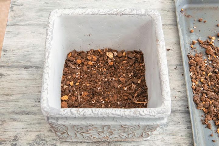 土の量は鉢の高さの半分程度に。足りなければあとで足す。