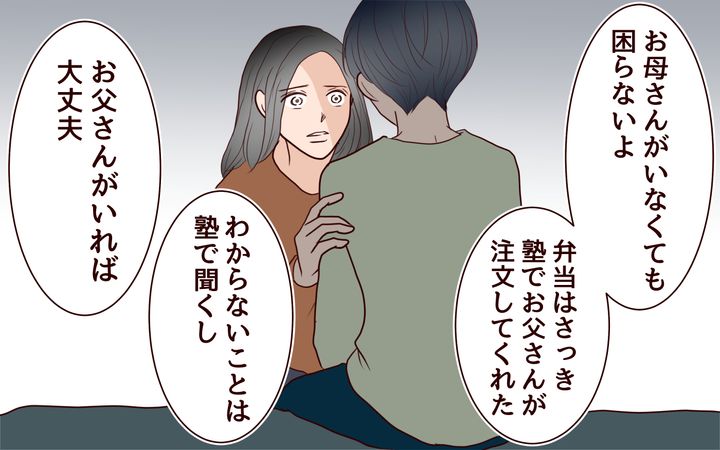 夫はそういう私の姿勢が重荷だったのだと言い、息子が夫にSOSをしてきたことを受け入れろと言います。しかも、私がウィークリーマンションに行かないなら、夫と息子が出て行くと…。この時期の環境の変化は、受験生にとって致命的になる可能性が高い。つまり私への脅し…。おとなしく出て行けという夫に、私は従うしかないのでしょうか…?