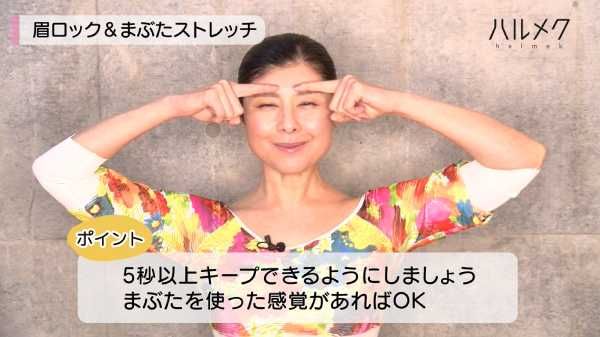 最後は「最近目が開けづらくなった気がする」という方必見の「眉ロック」。年齢を重ねるとまぶたは下垂してきがちですが、この動きはまぶたをしっかり動かして鍛えるため、目元のたるみやむくみ解消に効果的。目ヂカラがつくと、ぐんと若々しい印象になりますよ!