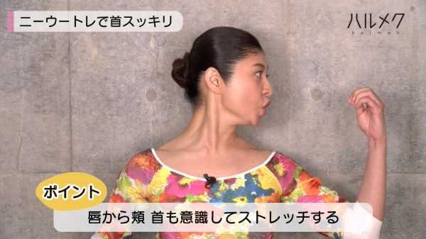 まず1つ目は、輪郭と首のたるみを引き締める「ニーウートレ」から。その名の通り、「ニー」「ウー」という口元の動きで、フェイスラインを左右する表情筋をトレーニング。年齢の出やすいデコルテラインもきれいにする効果があります。
